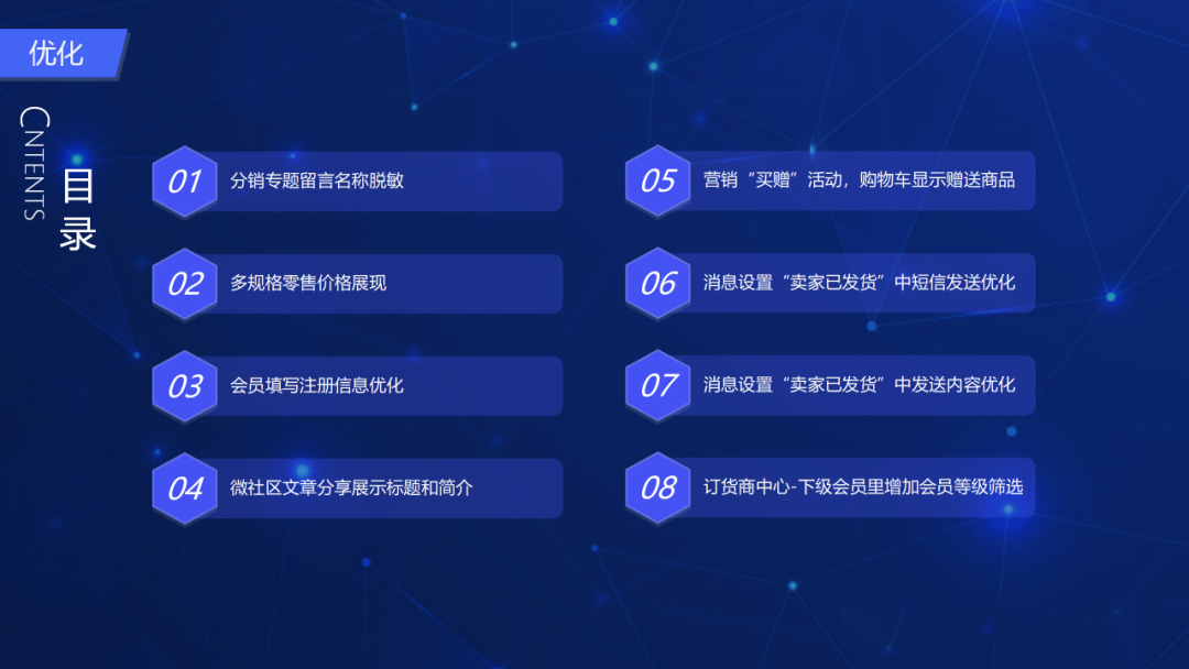微点新零售第177次更新,本次主要更新以下功能:1)新增1、订货商中心增加自定义项内容;2、商品列表展示上一等级会员价;3、门店服务奖体系;2)优化 1、营销“买赠”活动,购物车显示赠送商品;2、会员填写注册信息优化;3、多规格零售价格展现